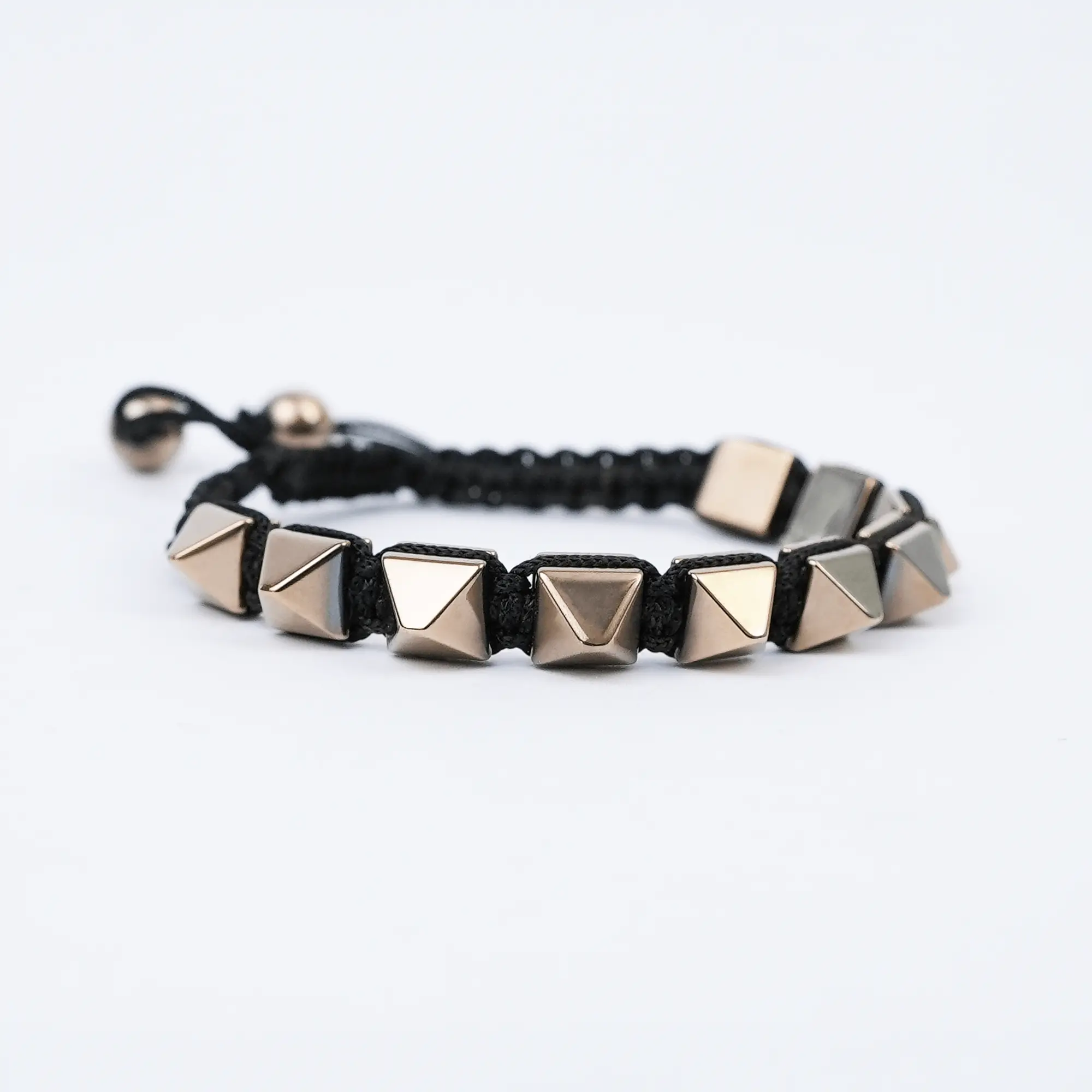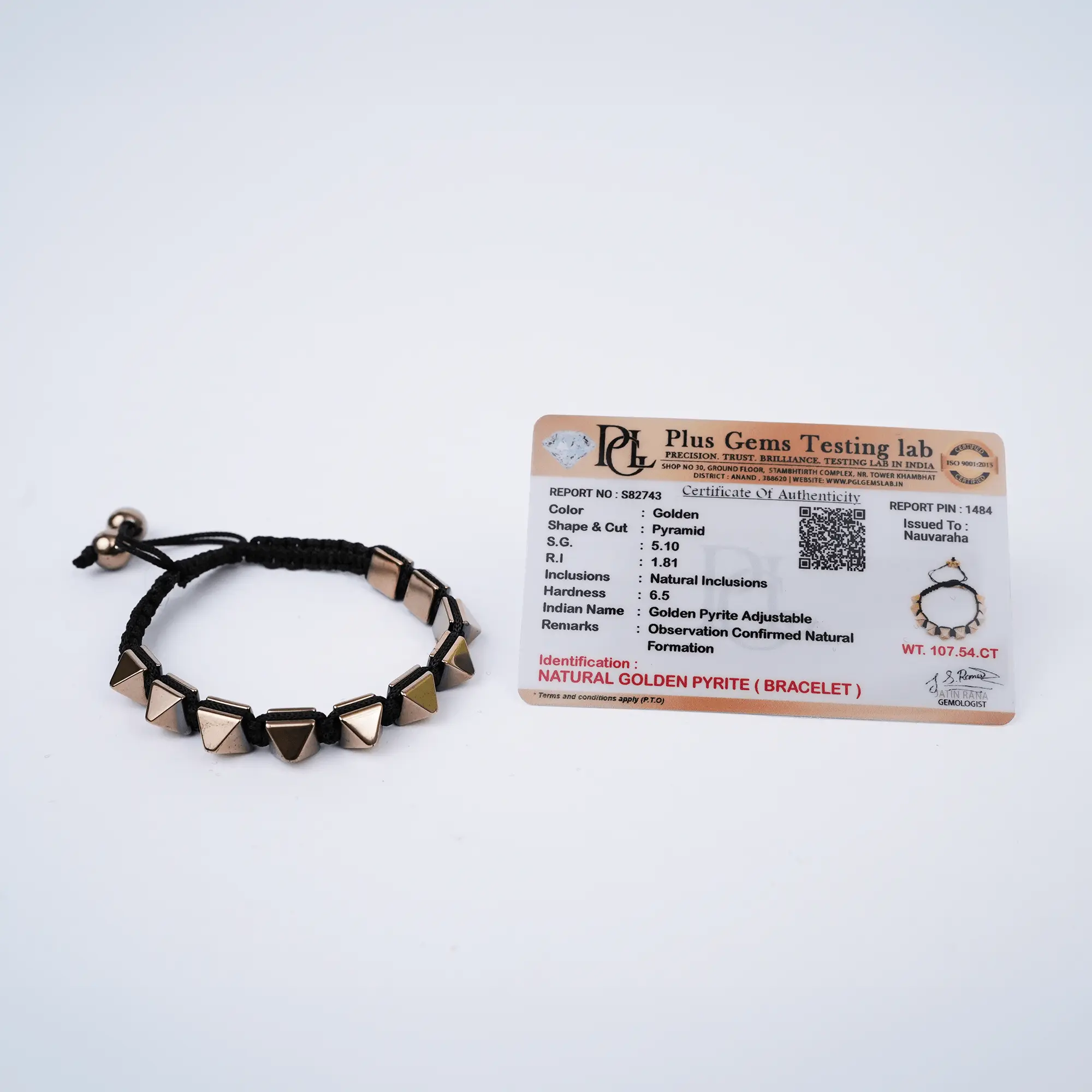 Pyrite Pyramid Charm Bead Bracelet – Handmade, Gold, 8mm Stretch Fit | Manifestation, Abundance & Financial Intention Setting | Sacred Geometry Kavach